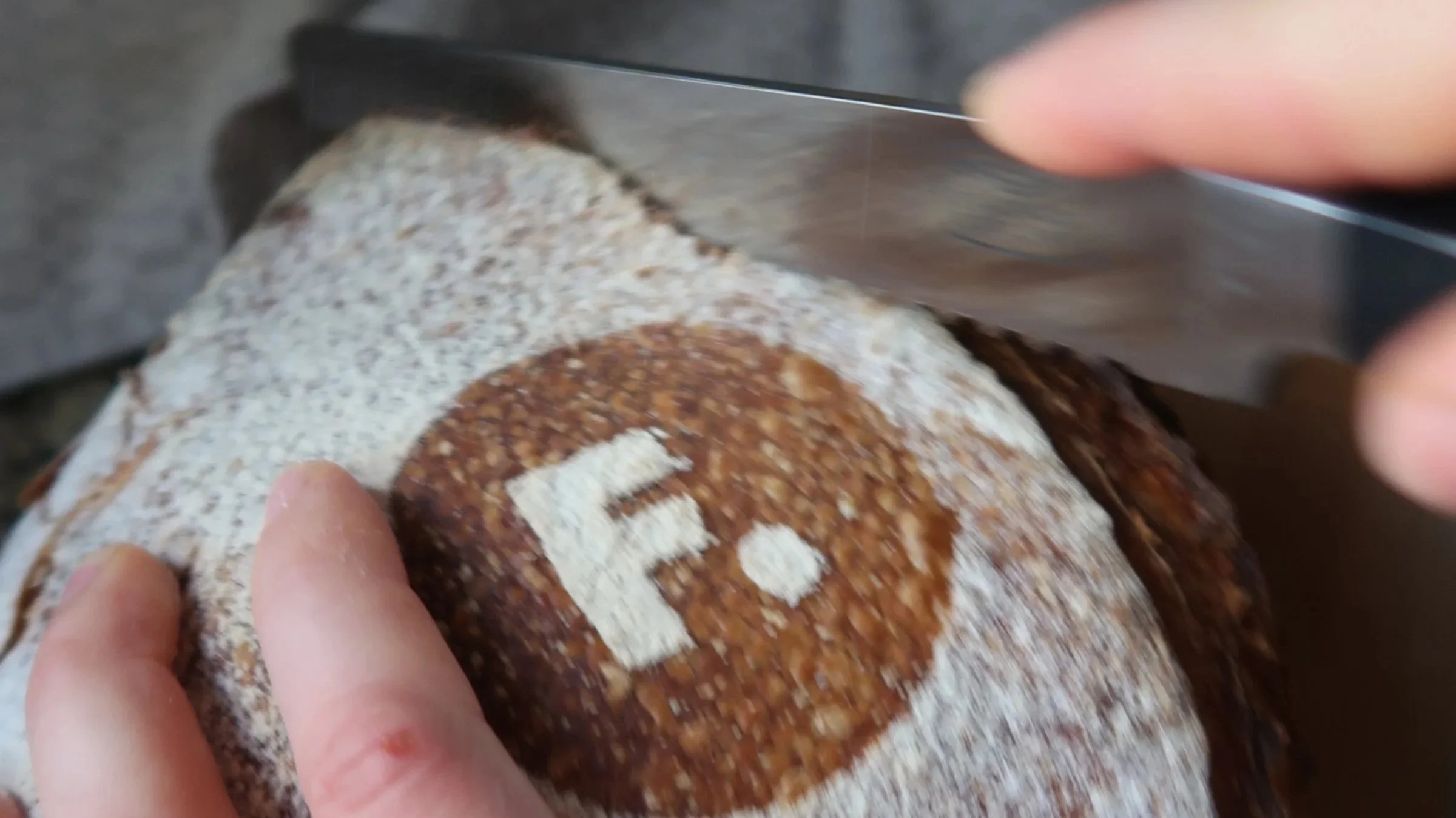 One of the first loaves with the signature “F.” logo stenciled on top.
